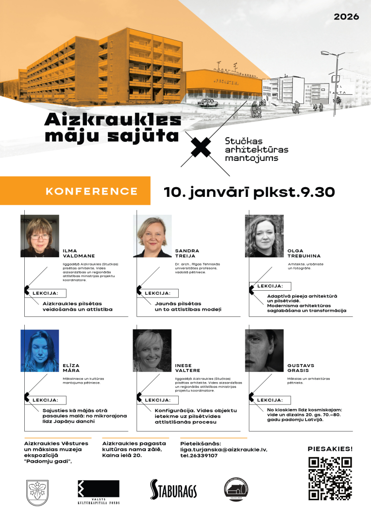 10. janvārī pulksten 10.00 Aizkraukles Vēstures un mākslas muzeja telpās Aizkraukles pagastā, kur izvietota ekspozīcija “Padomju gadi”, notiks konference “Aizkraukles māju sajūta x Stučkas arhitektūras mantojums”. Tā veltīta Aizkraukles 59. dzimšanas dienai. Konferenci varēs skatīt arī tiešsaistē.