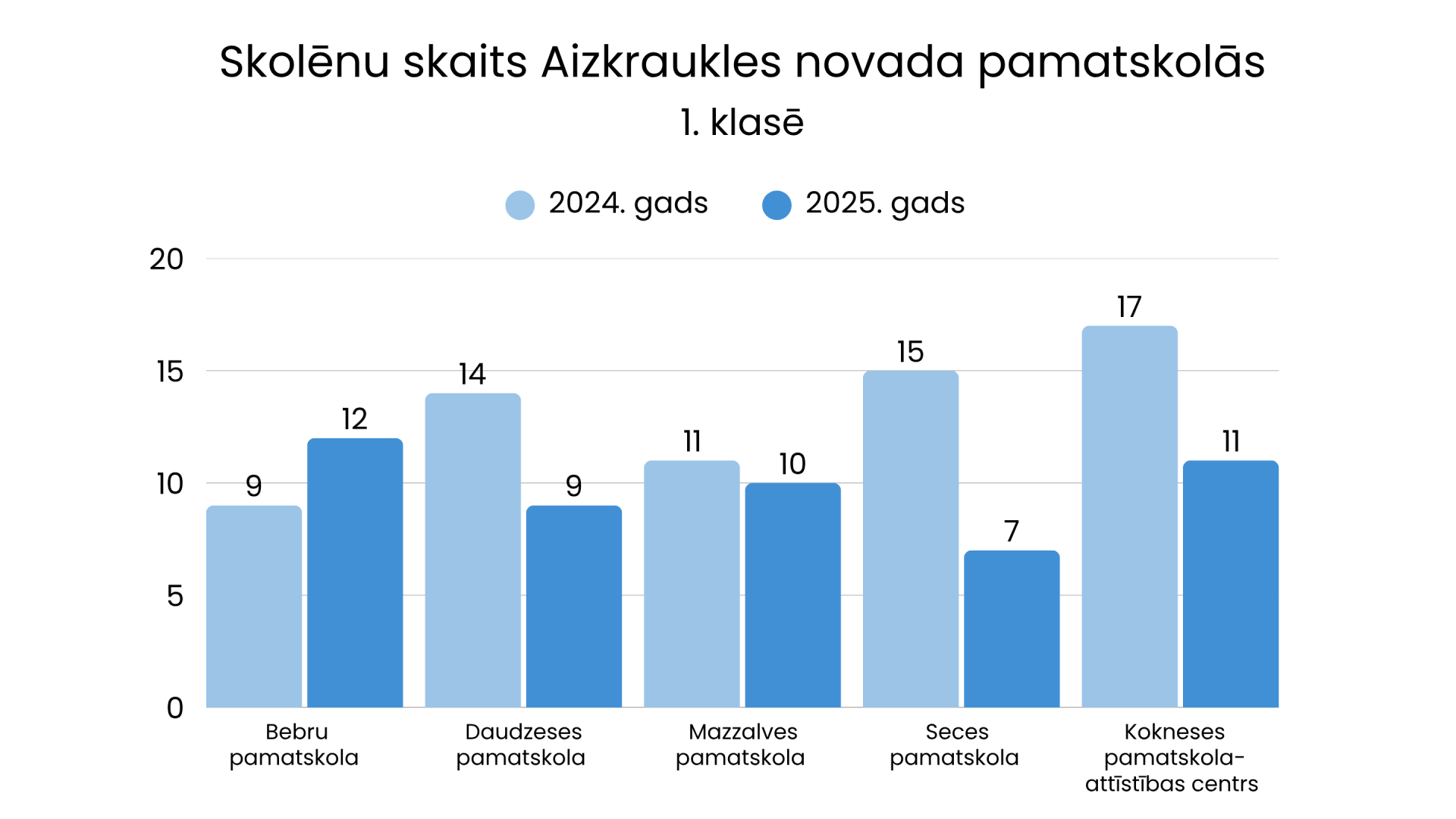 Bebru pamatskolā 1. klasē sāka mācīties 12 bērni (iepriekšējā gadā – 9), Daudzeses pamatskolā – 9 (pērn – 14), Mazzalves pamatskolā – 10 (pērn – 11), Seces pamatskolā – 7 (pērn – 15), savukārt Kokneses pamatskolā-attīstības centrā – 11 (pērn – 17).