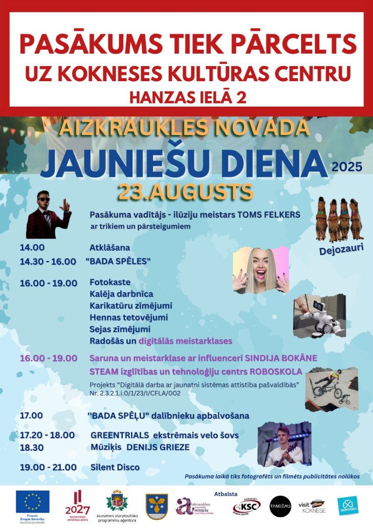 23. augustā Kokneses Kultūras centrā tiekamies Aizkraukles novada jauniešu dienā – festivālā “Digitāli brīvs”, kas notiks jau ceturto gadu pēc kārtas. Mērķauditorija ir jaunieši, bet pasākuma aktivitātes varēs vērot jebkurš interesents.