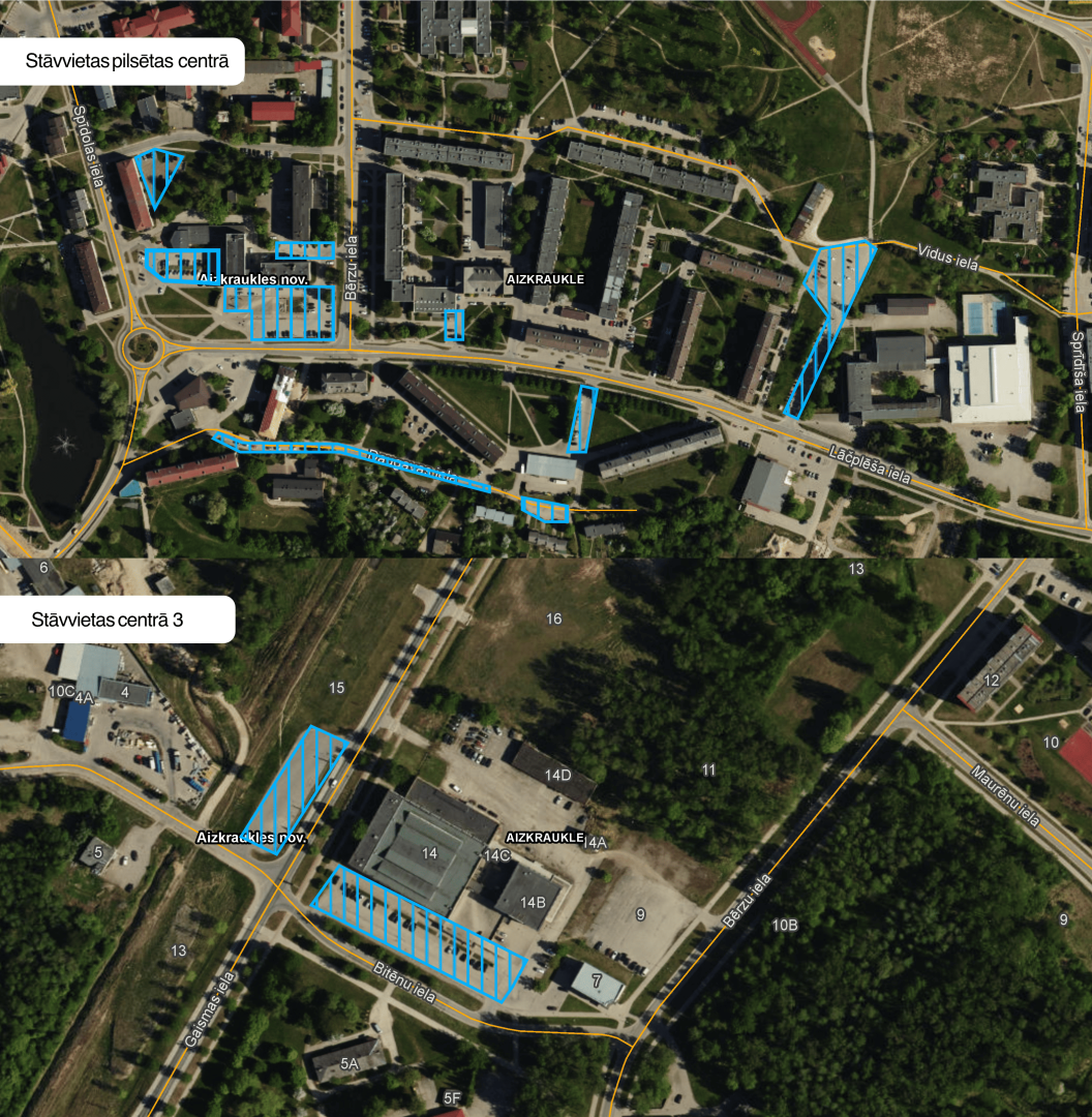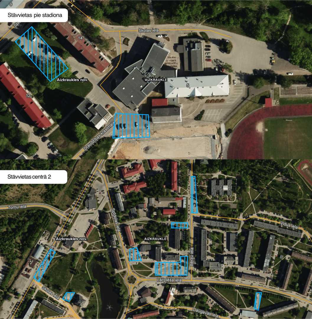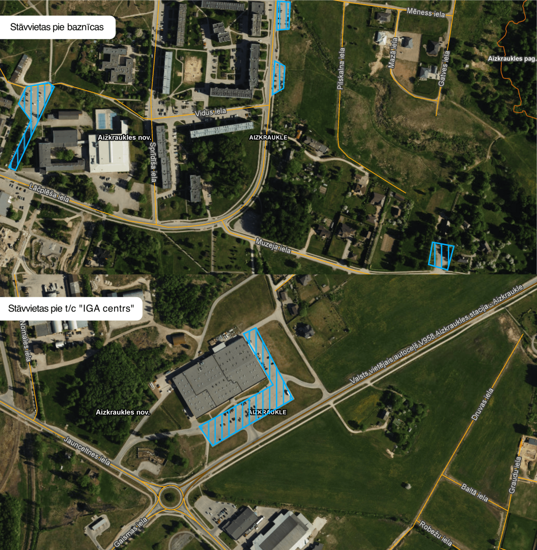 Ieteicamie stāvlaukumi atspoguļoti kartēs.