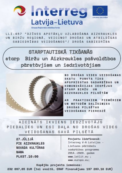 Aizkraukles novada pašvaldība īsteno INTERREG V – A Latvijas – Lietuvas pārrobežu sadarbības programmas 2014.–2020. gadam, projektu LLI-457 “Dzīves apstākļu uzlabošana trūcīgajā pārrobežu reģionā, veicinot drošas un atbildīgas sabiedrības veidošanos”, projekta akronīms: “Droša sabiedrība”