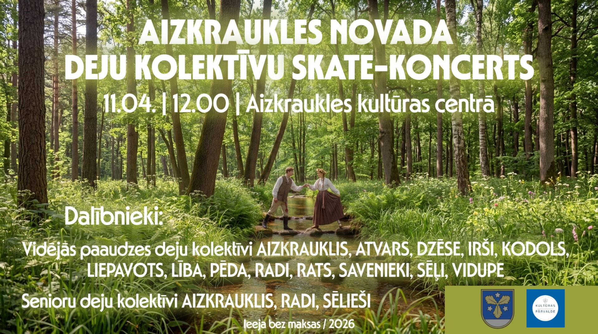 11. aprīlī plkst. 12.00 Aizkraukles kultūras centrā – Aizkraukles novada deju kolektīvu skate-koncerts