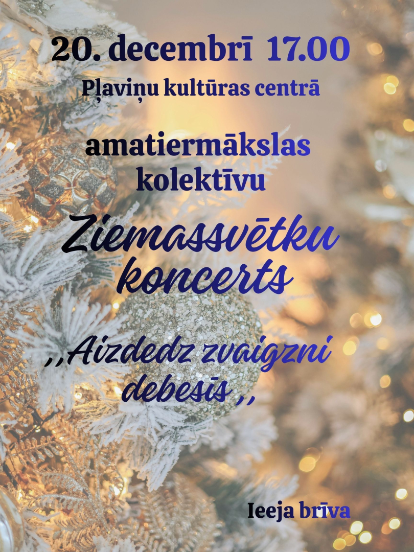 20. decembrī pulksten 17.00, Pļaviņu kultūras centrā – Amatiermākslas kolektīvu Ziemassvētku koncerts “Aizdedz zvaigzni debesīs”.