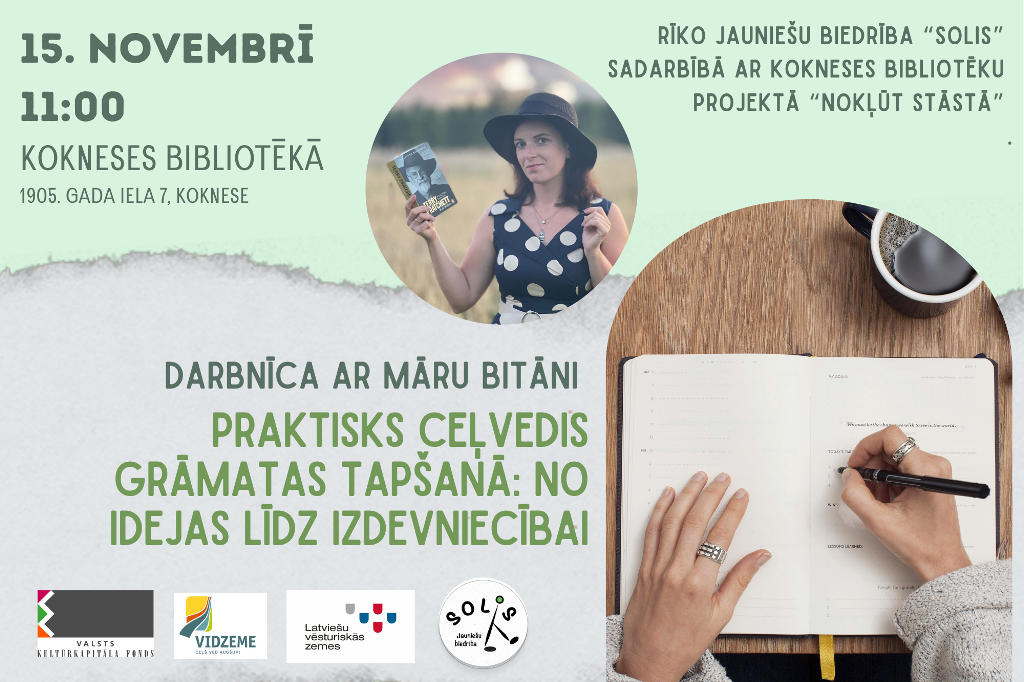 Kokneses bibliotēkā 15. novembrī pulksten 11.00 Māra Bitāne vadīs darbnīcu "Praktisks ceļvedis grāmatas tapšanā: no idejas līdz izdevniecībai”. Aicināti tie, kuri raksta un apsver nākotnē izdot savu grāmatu.