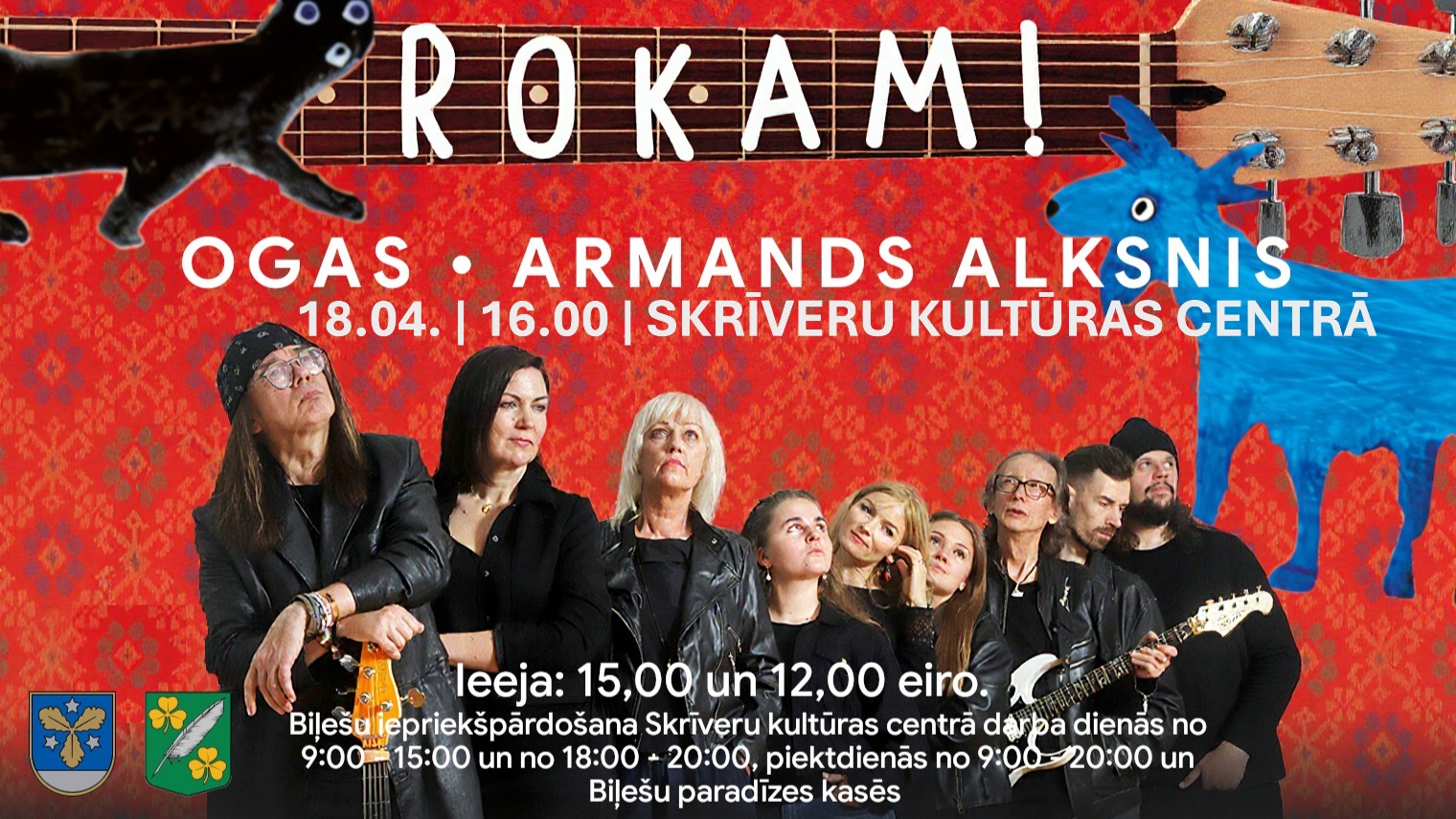 18. aprīlī plkst. 16.00, Skrīveru kultūras centrā – Etnogrupas “Ogas” un leģendārā ģitārista Armanda Alkšņa koncerts, kurā skanēs dziesmas no mūziķu kopīgi radītā albuma “Rokam!”. Tajā iekļautas 11 Rucavas tradicionālās melodijas etnoroka stilistikā, ieskanoties ārtroka, blūzroka, hārdroka, bigbīta u.c. žanru elementiem. Albums izdots 2025. gadā ar nodibinājuma “Liepāja 2027” organizētā projekta “Rokam roku!” atbalstu.