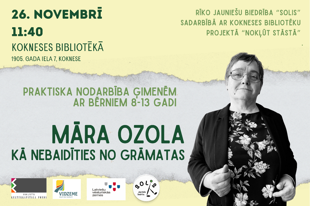 Projektu “Nokļūt stāstā” īsteno jauniešu biedrība “SOLIS” sadarbībā ar Kokneses bibliotēku un biedrību “Irši iedvesmo”.