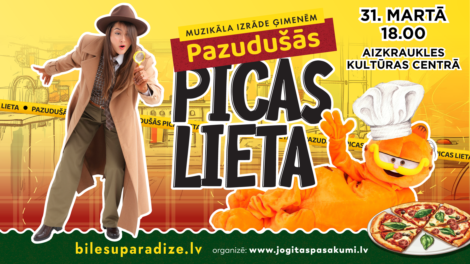 31. martā, pulksten 18.00, Aizkraukles kultūras centrā, muzikāla izrāde visai ģimenei "PAZUDUŠĀS PICAS LIETA".