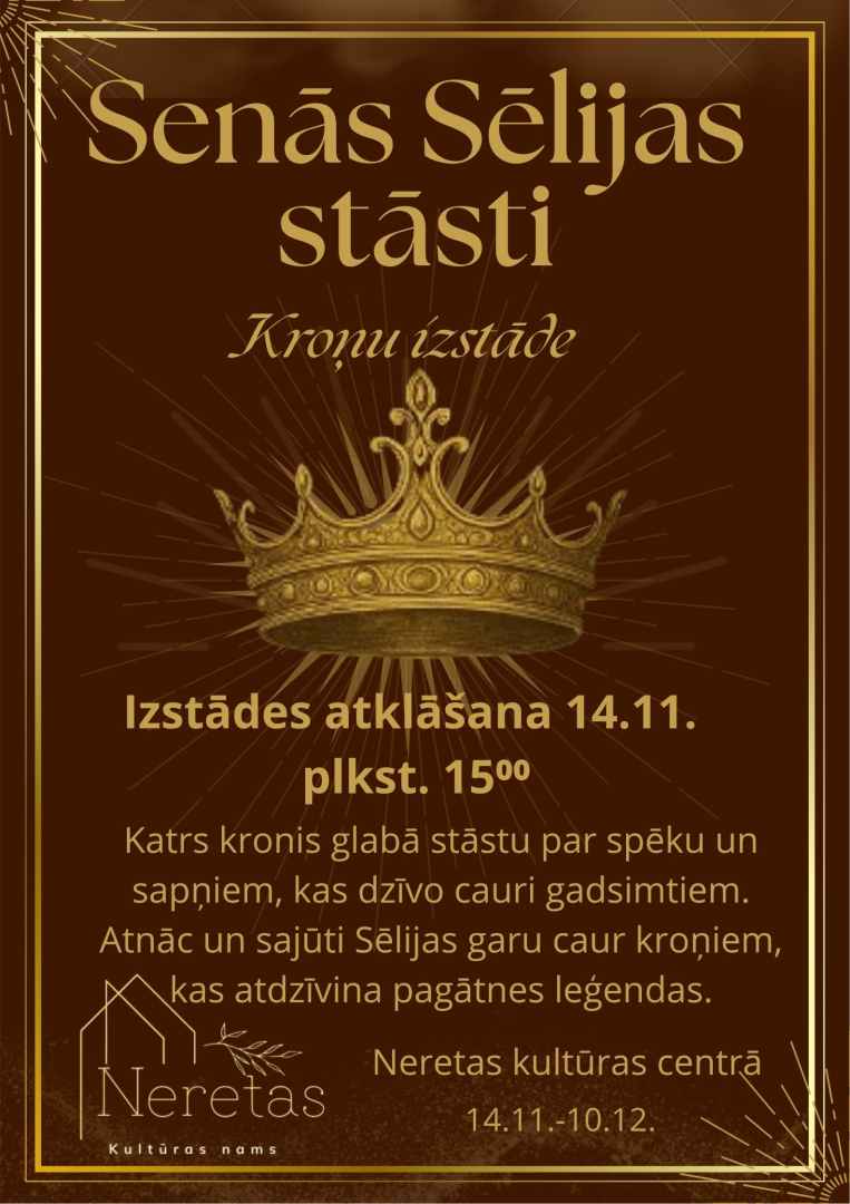 14. novembrī plkst. 15.00, Neretas kultūras centrā - Senās Sēlijas stāsti. Kroņu izstāde. Izstādes atklāšana.