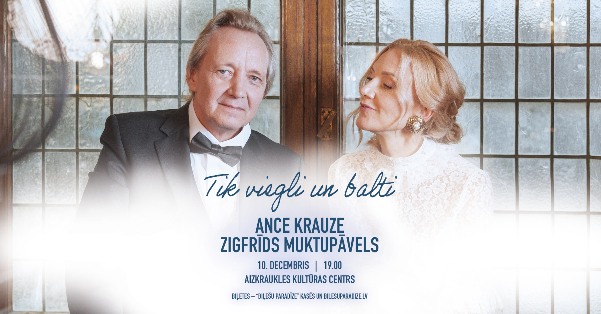 Iemīļotie dziedātāji Ance Krauze un Zigfrīds Muktupāvels 10. decembrī ar sirsnīgu Ziemassvētku koncertprogrammu "Tik viegli un balti" viesosies Aizkraukles kultūras centrā!