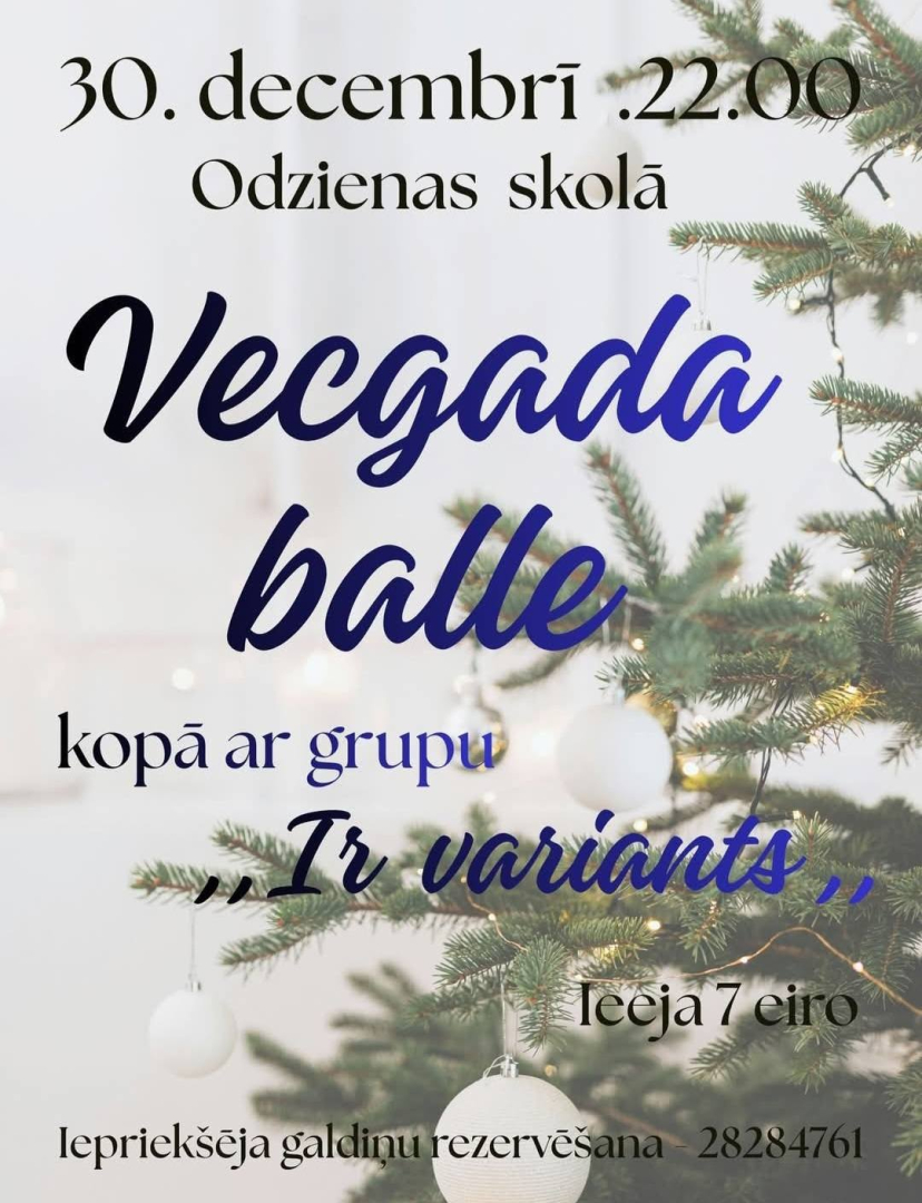 30. decembrī pulksten 22.00, Odzienas skolā – Vecgada balle kopā ar grupu “Ir variants”. Galdiņu rezervācija pa tālruni 28284761. Ieeja – 7 eiro.