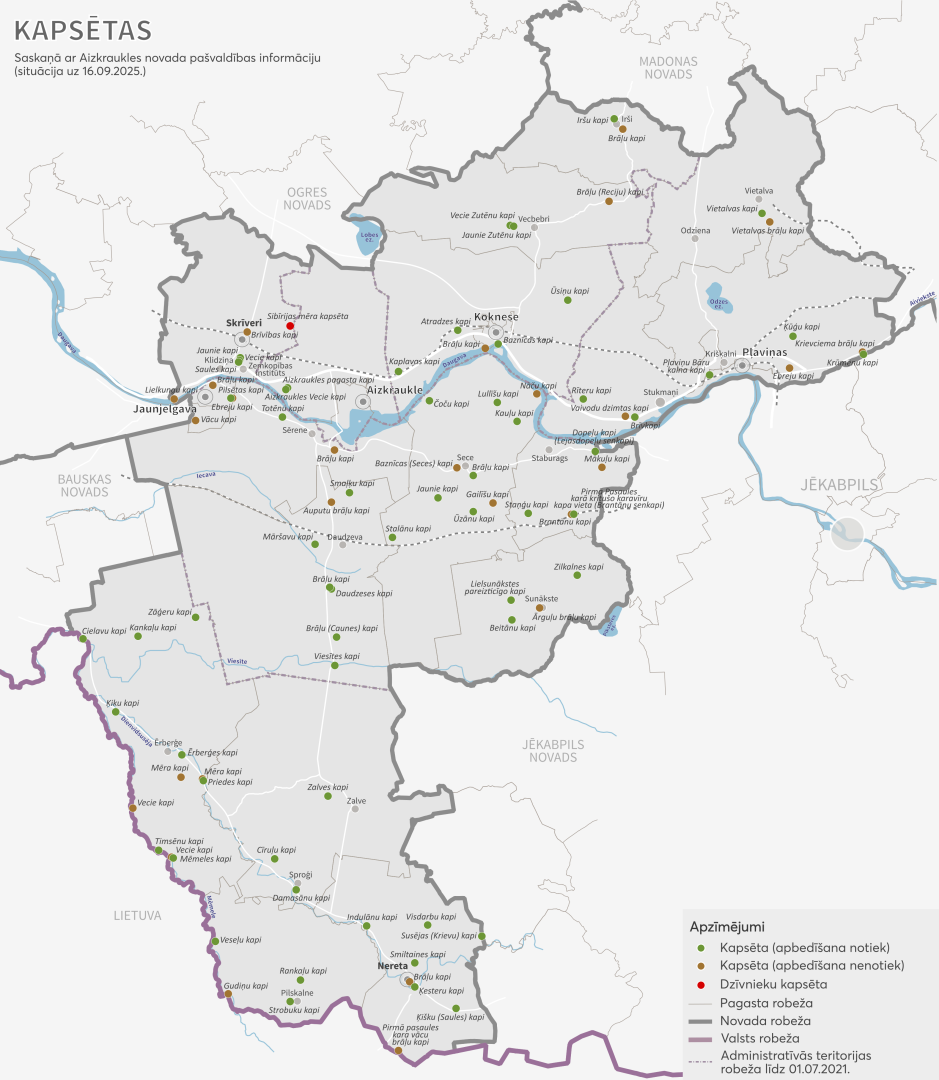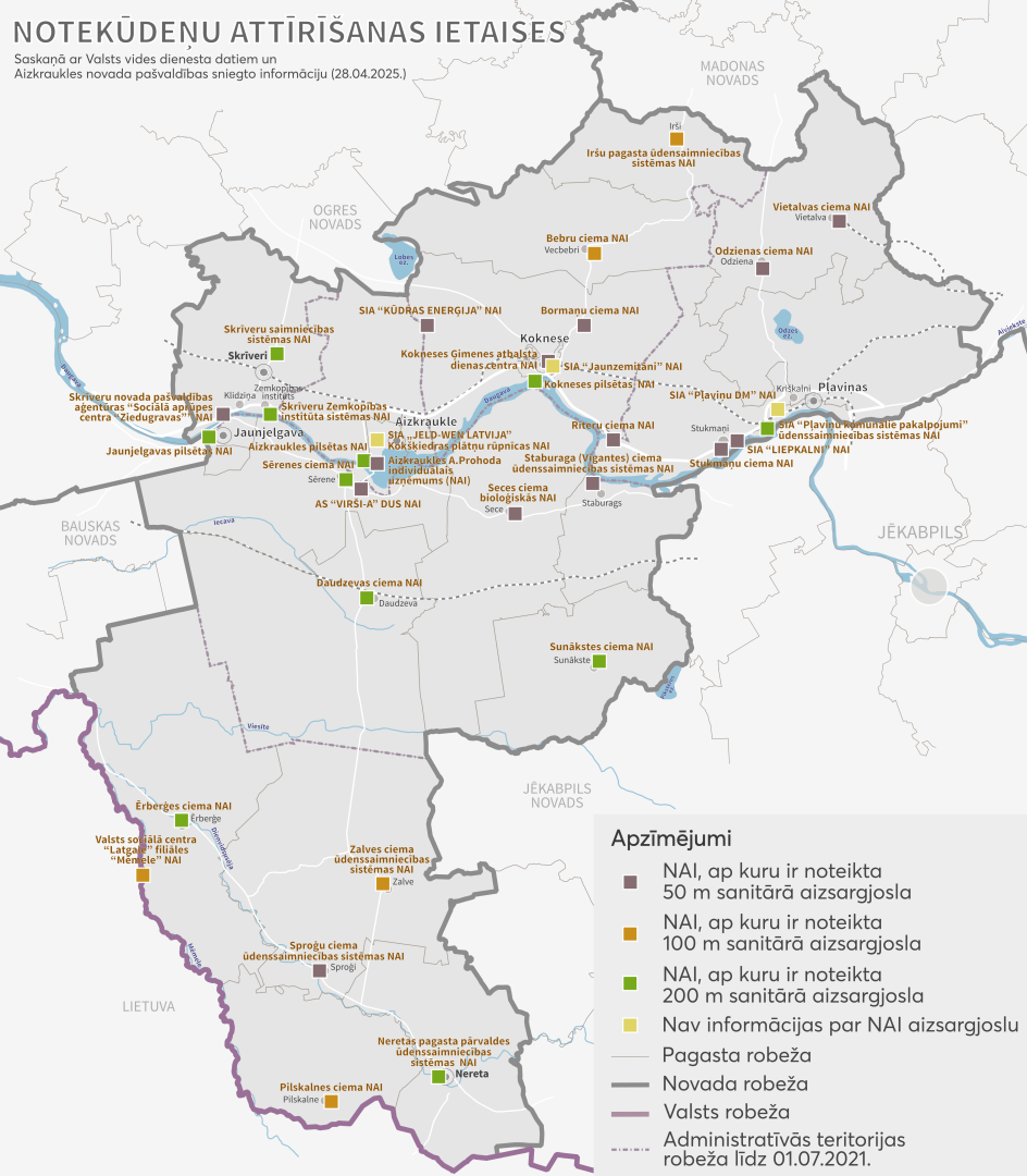 Karte un saraksts ar iesārņotām un potenciāli piesārņotām vietām Aizkraukles novadā